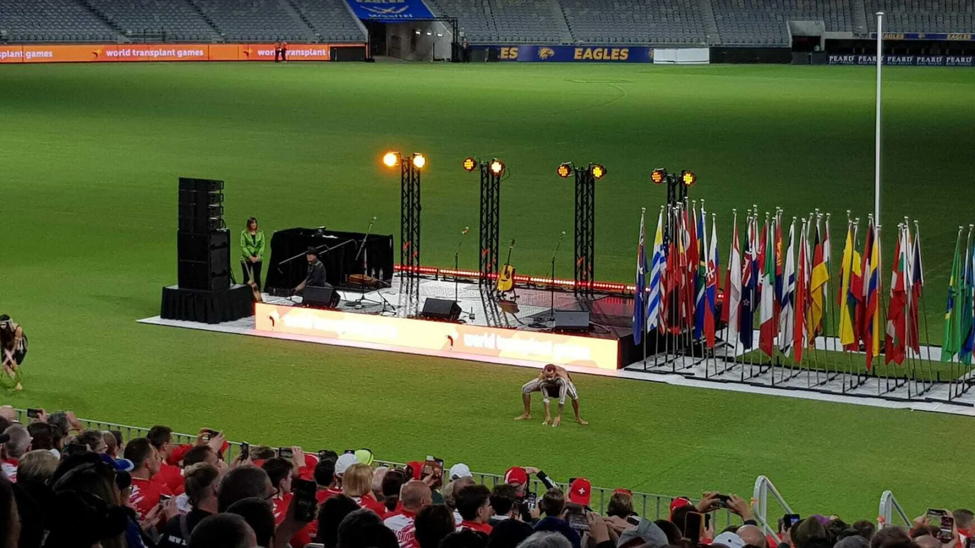 Mit der Eröffnungsfeiereier im Opus Stadion in Perth wurden die 24. World Transplant Games 2023 in Perth feierlich eröffnet. Die Eröffnungsfeier startete mit der Parade der Nationen der über 1500 Athletinnen und Athleten aus 45 Nation über die neu errichteten Matagarup Bridge.